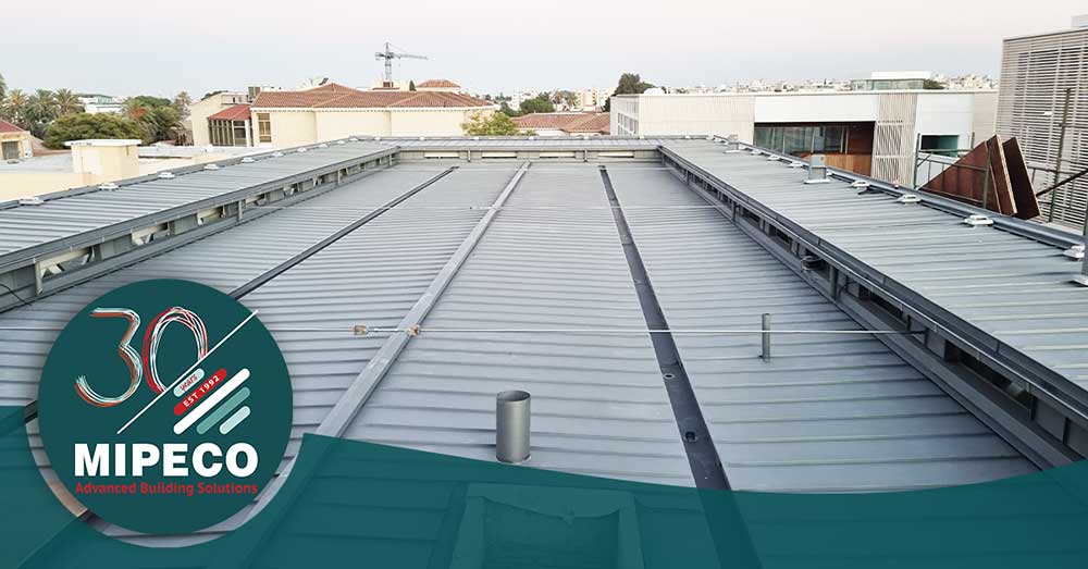 Στο έργο αυτό τοποθετήθηκε αεριζόμενη στέγη με διπλή επίπεδη ραφή standing seam.