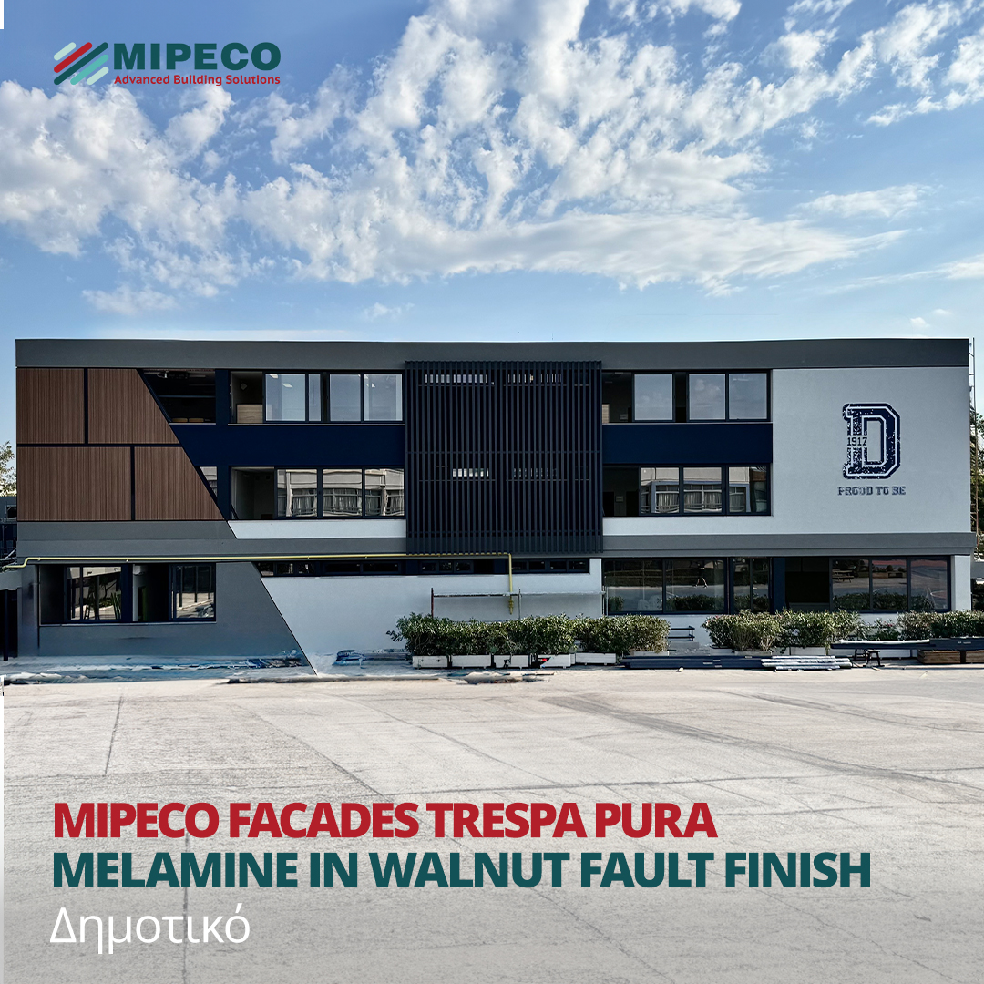 Νέα εφαρμογή MIPECO FACADES TRESPA PURA στα Εκπαιδευτήρια ΔΟΥΚΑ στο Μαρούσι. Έτοιμες λωρίδες HPL σε απομίμηση ξύλου με αφανή στήριξη προσφέρουν μια εξαιρετικά κομψή και διαχρονική αισθητική στο εκπαιδευτικό συγκρότημα. Η σειρά TRESPA PURA συνδυάζει αντοχή, αισθητική και εύκολη συντήρηση, αποτελώντας ιδανική λύση για σύγχρονα κτίρια υψηλών προδιαγραφών. ? Ευχαριστούμε θερμά την κατασκευαστική εταιρεία VAZEOS CONSTRUCTIONS και τον αρχιτέκτονα Γιώργο Γουγουλάκη – G_Architects, καθώς και όλους τους συνεργάτες μας για την άριστη υλοποίηση του έργου.