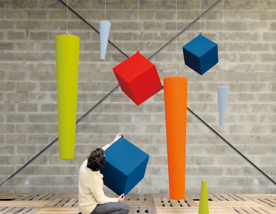 Τα στερεομετρικά σχήματα ABSO είναι τόσο ελαφριά που μπορούν να αναρτηθούν με καλώδια. Είναι απλά σχήματα από αφρώδες ηχοαπορροφητικό υλικό επενδυμένα με ένα από τα 22 υπέροχα χρώματα του AERIA και πολύ εύκολα στην ανάρτηση.